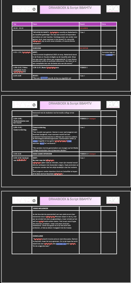 Hoewel deze taken minder zichtbaar zijn in het eindresultaat, vormen ze de basis voor een succesvolle productie. Zonder duidelijke planning en organisatie kunnen technische problemen, verwarring en tijdsoverschrijdingen het hele proces verstoren. Mijn rol als producer zorgde er juist voor dat het team efficiënt kon werken en het programma op tijd en volgens plan kon worden afgerond.